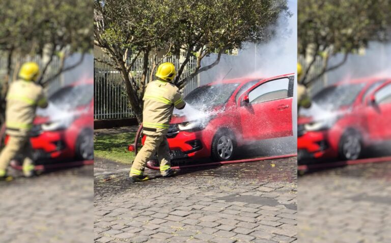 Um veículo Fiat Mobi pegou fogo na rua Manoel Ribas, em Irati, no início da tarde desta quinta-feira. Segundo informações da Guarda Municipal,