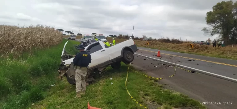 Um grave acidente foi registrado na manhã deste domingo (24) no km 204,6 da BR-373, em Ipiranga. Por volta das 11h, uma colisão