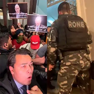 Uma palestra que seria realizada no Salão Nobre do Curso de Direito, no prédio histórico da Universidade Federal do Paraná, terminou em confusão na