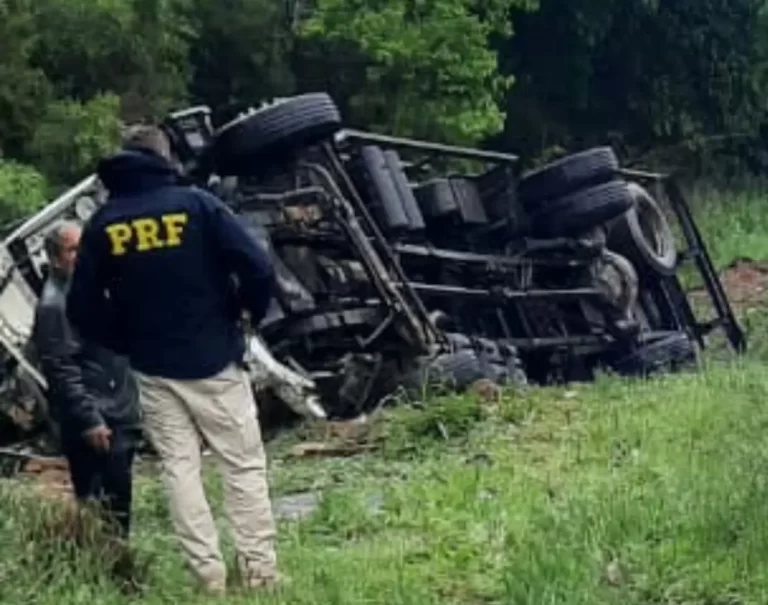 Passageiro fica ferido após tombamento de caminhão na BR-476