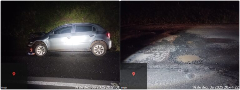 BURACO NA PISTA PROVOCA ACIDENTE E DEIXA CONDUTORA FERIDA NA PR-460, EM PITANGA. No domingo, 14 de dezembro de 2025, por volta