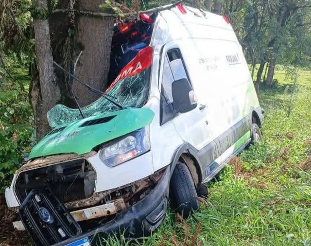 AMBULÂNCIA SAI DA PISTA E BATE EM ÁRVORE EM SÃO MATEUS DO SUL Uma ambulância se envolveu em um acidente de trânsito