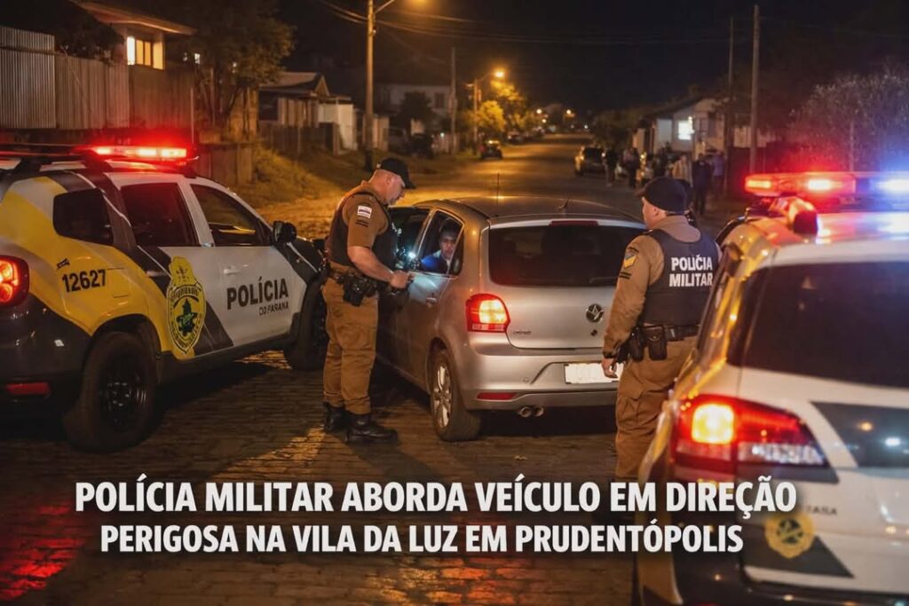 Durante atendimento a uma ocorrência na Vila da Luz, em Prudentópolis, uma equipe da Polícia Militar visualizou um veículo realizando manobras perigosas do tipo “cavalo de pau” em via pública.
