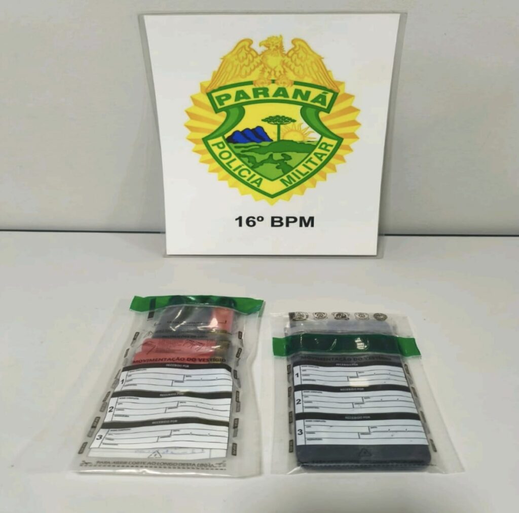 fogo, relatando ter possuído uma balestra já vendida. Autorizou busca em sua residência, com consentimento formal e registro em vídeo dos responsáveis. No quarto do abordado foram localizados cinco cartuchos de espingarda calibre 16 GA (três CBC plásticos e dois metálicos), todos carregados. Informou que a arma correspondente teria sido vendida a pessoa residente em Irati, sem maiores dados. Diante dos fatos, foi conduzido sem uso de algemas ao Hospital Santa Casa para exame de lesões (sem constatação de lesões) e, posteriormente, à Delegacia de Polícia Civil de Prudentópolis. Os cartuchos e um aparelho celular Xiaomi Redmi preto foram apreendidos e lacrados.