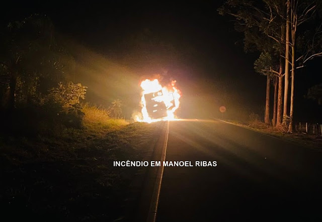 CABINE DE CAMINHÃO É DESTRUÍDA PELO FOGO NA PR 487 ENTRE MANOEL RIBAS E CÂNDIDO DE ABREU