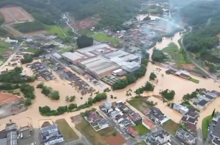 CHUVAS TRANSFORMAM RUAS EM RIOS EM SANTA CATARINA As fortes chuvas que atingiram Santa Catarina nesta segunda-feira (24) provocaram inundações severas em