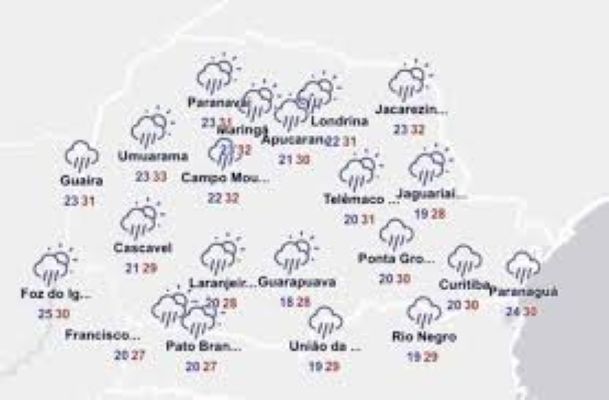 O fim de semana será de alívio no calor, principalmente na faixa Leste do Paraná. No Interior, entretanto, mesmo com a leve