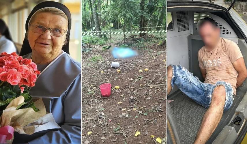 Ao constatar que a freira não mais reagia, afastou-se e, em seguida, aproximou-se de frequentadores do convento, reiterando que trabalharia ali e informando ter encontrado a religiosa caída.