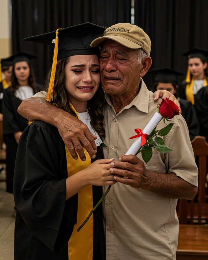 Ficou ao fundo do auditório, de pé, com uma rosa na mão e a camisa de sempre. Não tinha terno, nem gravata, nem perfume caro. Ao seu redor, pais bem vestidos seguravam câmeras caras e falavam alto, orgulhosos. Ele não dizia nada. Apenas observava.