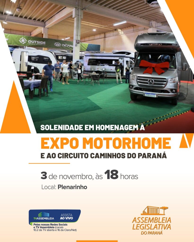 Nesta segunda-feira, 03 de Novembro, a Assembleia Legislativa do Paraná (ALEP) realiza uma Sessão Solene em homenagem à Expo Motorhome e ao Circuito Caminhos do Paraná.