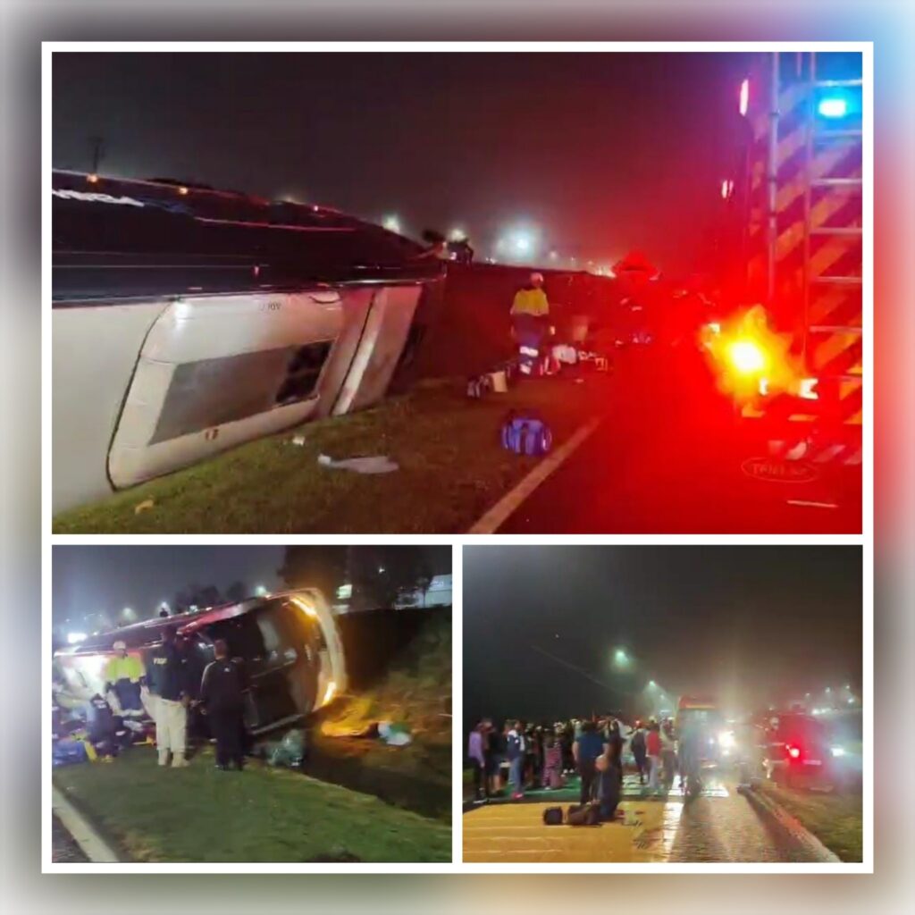 Ônibus de viagem tomba na BR-277, mata turista equatoriano e deixa 12 feridos no Paraná