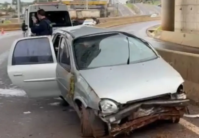 Durante a perseguição, o veículo perdeu o controle ao tentar fazer uma curva no trevo, saiu da pista e capotou do viaduto, parando na parte inferior da BR-369.